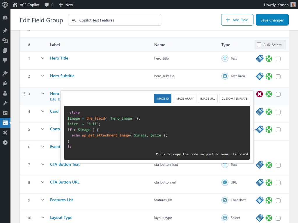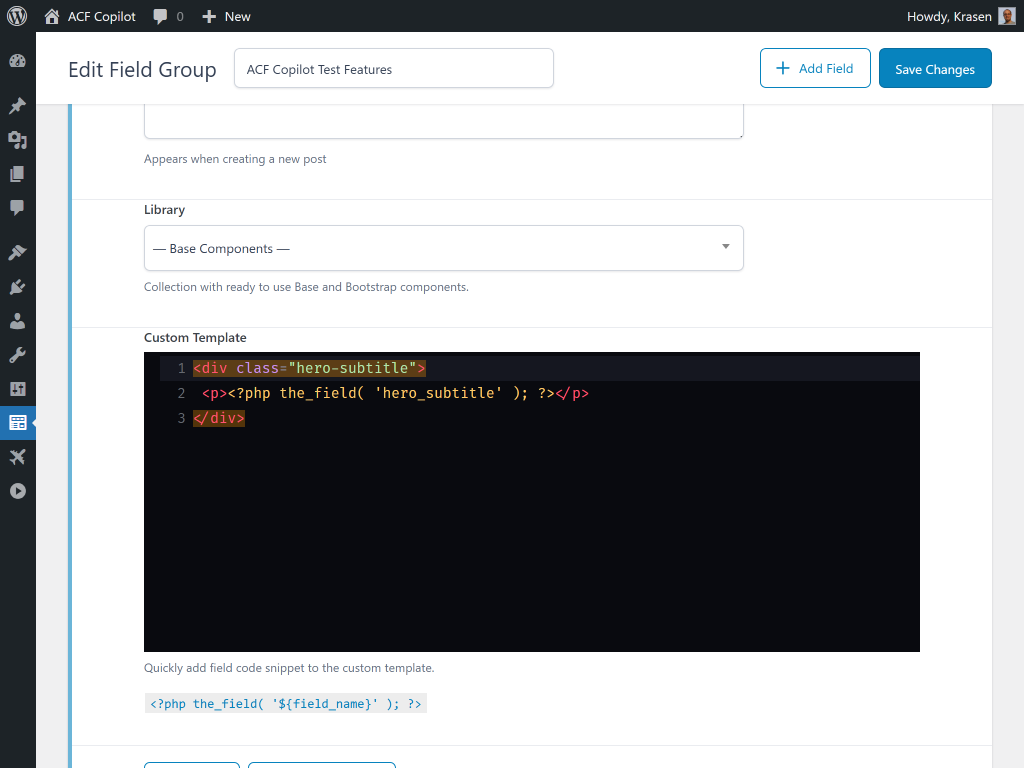 No, does not modify your existing fields or data. It enhances your workflow with tools like LivePreview, search, and code snippets. Your original field groups remain completely unchanged.