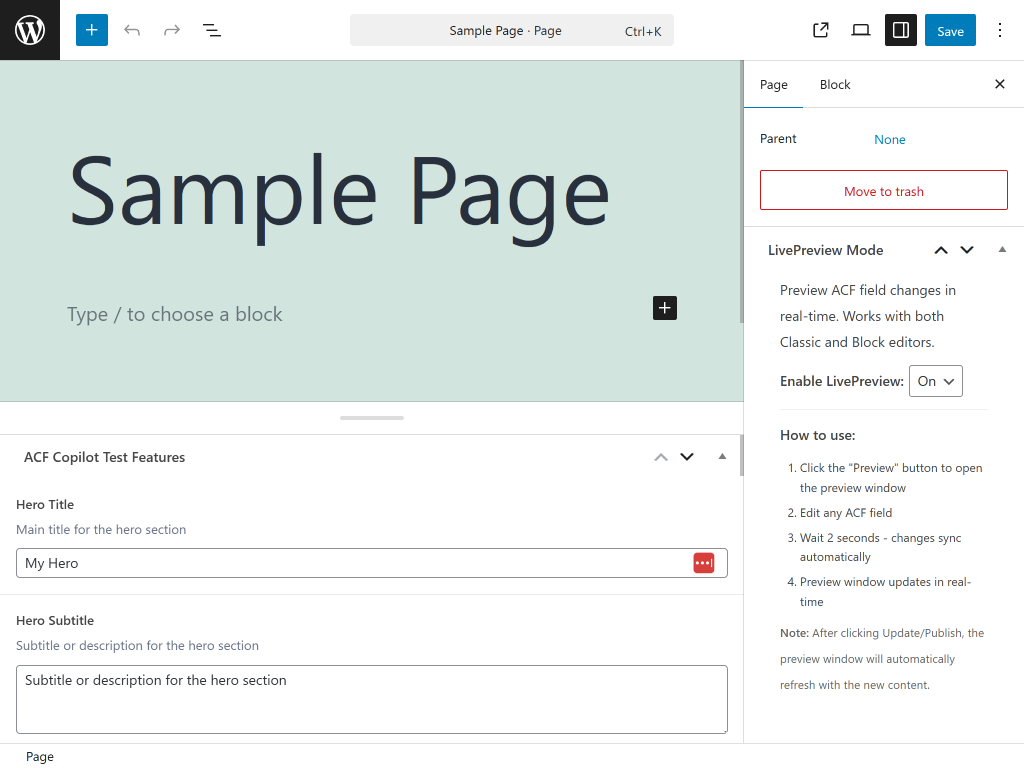 No complex setup required - works immediately with both ACF Free and ACF Pro.