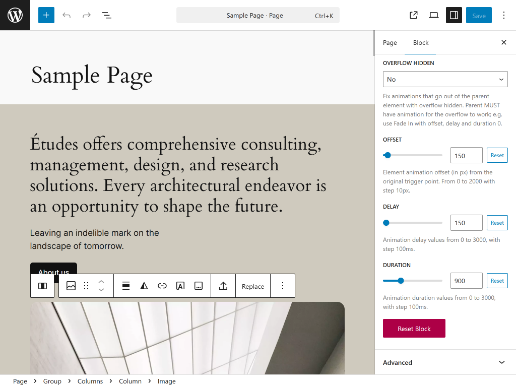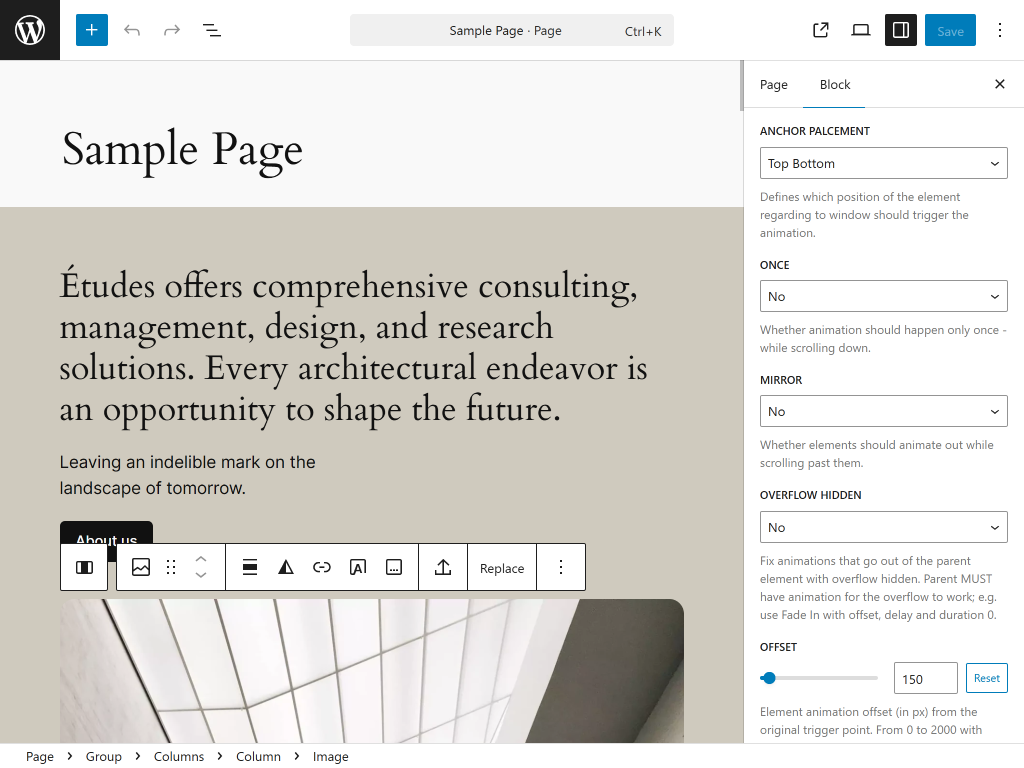 Add professional scroll animations to your blocks with fade effects, slide animations, and zoom effects. Make your content come alive as visitors scroll through your pages. Stop settling for static pages. This plugin brings your blocks to life with scroll-triggered effects - no coding required. Just select any block, choose an effect, and watch your content animate beautifully as visitors scroll.