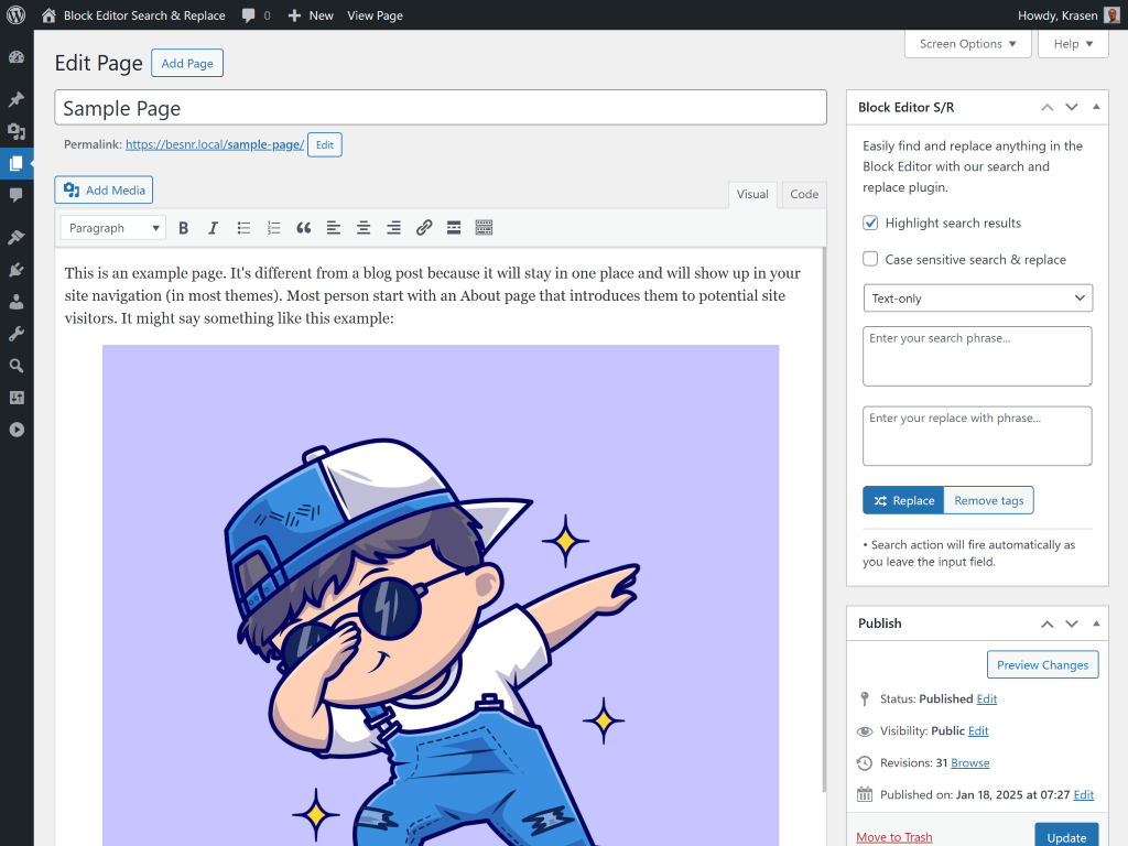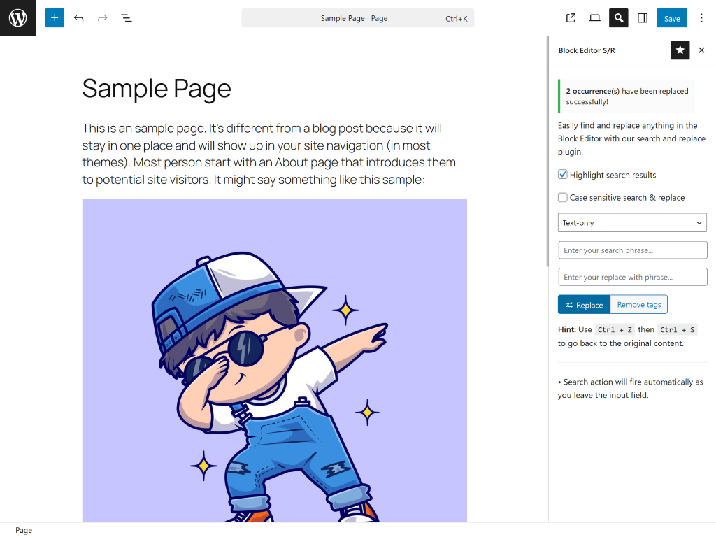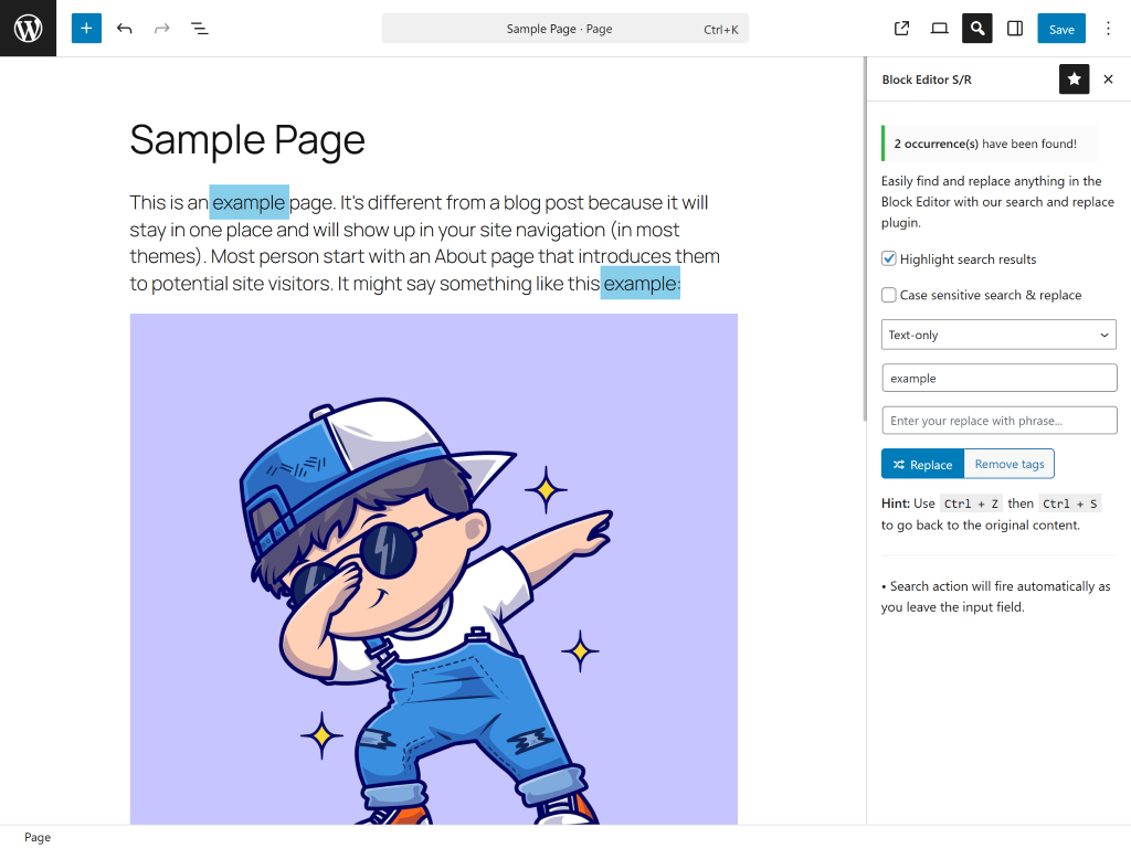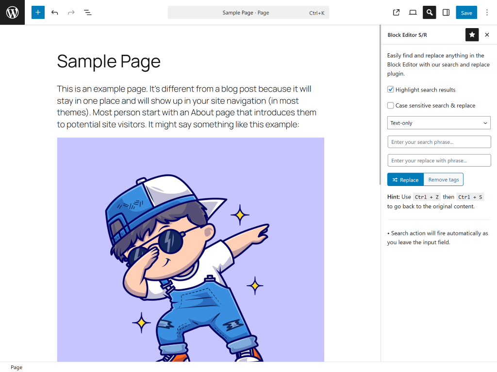 Add search and replace functionality directly to the Gutenberg editor. Find text, links, or images across all blocks, see highlighted matches, and replace with one click.