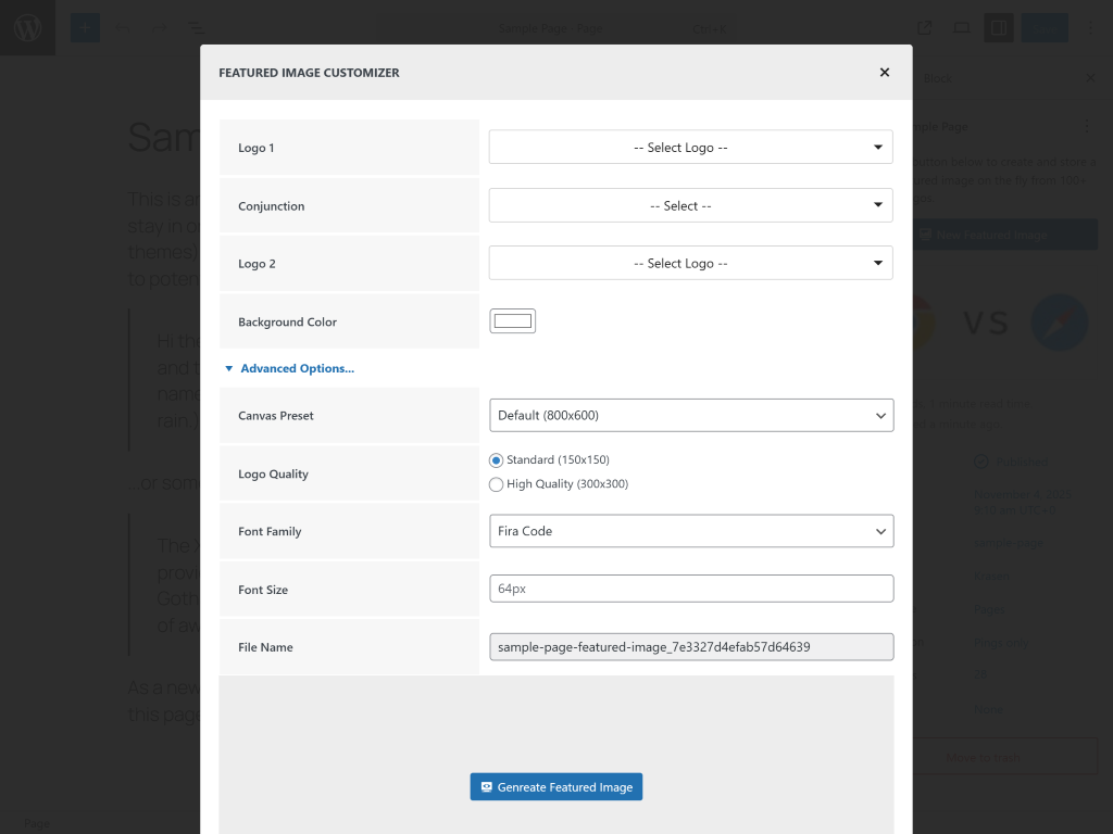This plugin generates custom featured images directly in your editor with popular brand logos, customizable backgrounds, and professional layouts. Create eye-catching post thumbnails for comparison posts, tutorials, reviews, and social media sharing.